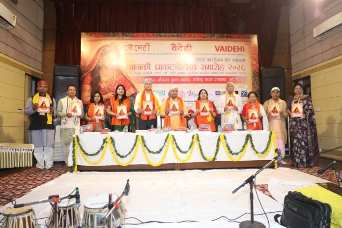 नई दिल्ली। जानकी नवमी के अवसर पर राष्ट्रीय राजधानी में वैदेही फाउंडेशन का ग्यारहवां वार्षिक आयोजन “ग्यारहम जानकी प्राकट्योत्सव 2026” शनिवार को आईटीओ स्थित राजेंद्र भवन सभागार में भव्यता के साथ आयोजित किया गया। कार्यक्रम में बड़ी संख्या में लोगों की उपस्थिति रही।