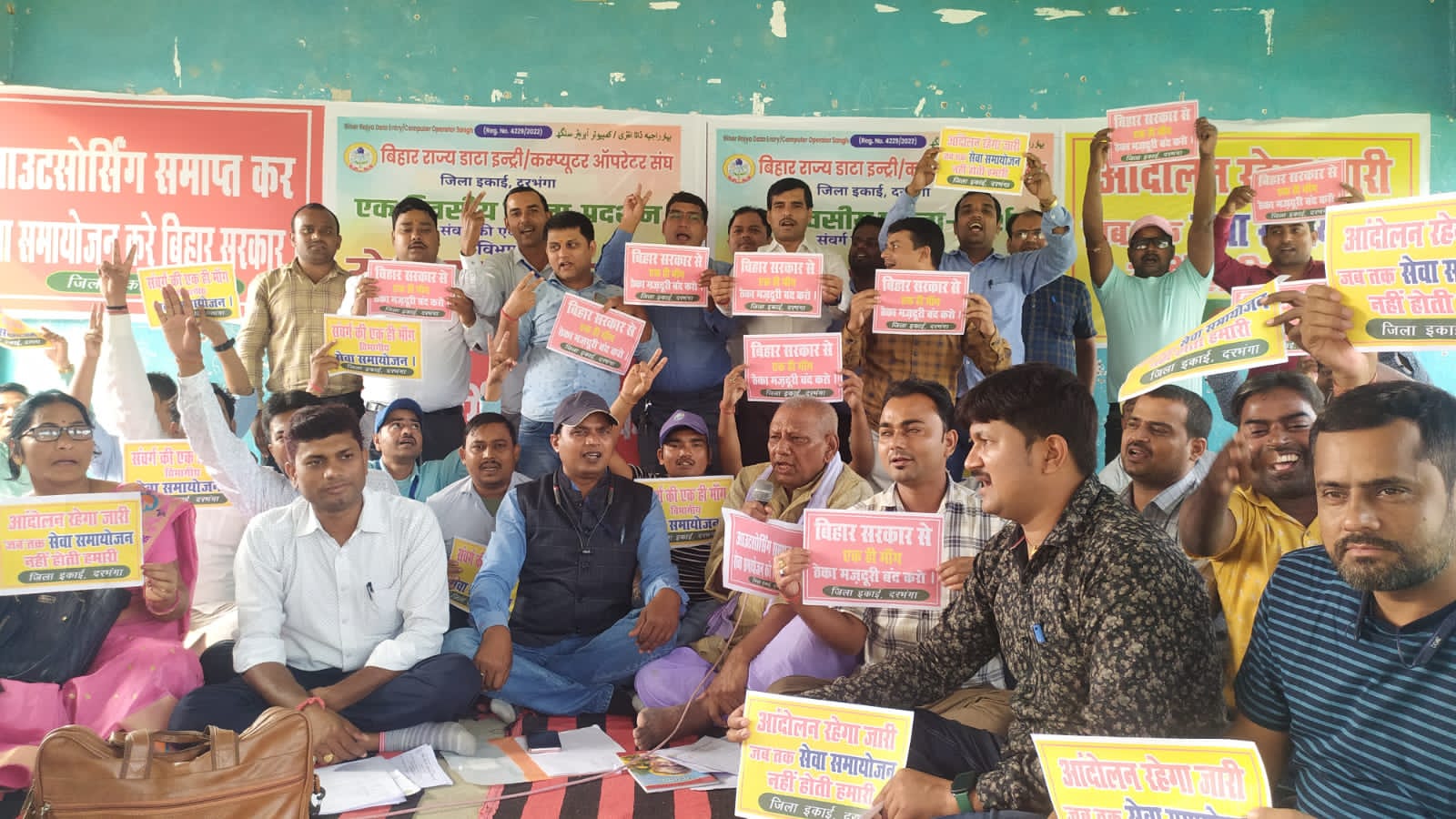 धरना स्थल पर उपस्थित कर्मचारियों को बिहार राज्य अराजपत्रित कर्मचारी महासंघ के जिला मंत्री फूल कुमार झा ने संबोधित करते हुए कहा कि राज्य एवं केन्द्र सरकार कर्मचारी एवं श्रमिक विरोधी है। डाटा इन्ट्री ऑपरेटर की माँग जाजय है, सरकार इन्हें सरकारी सेवक घोषित करें।