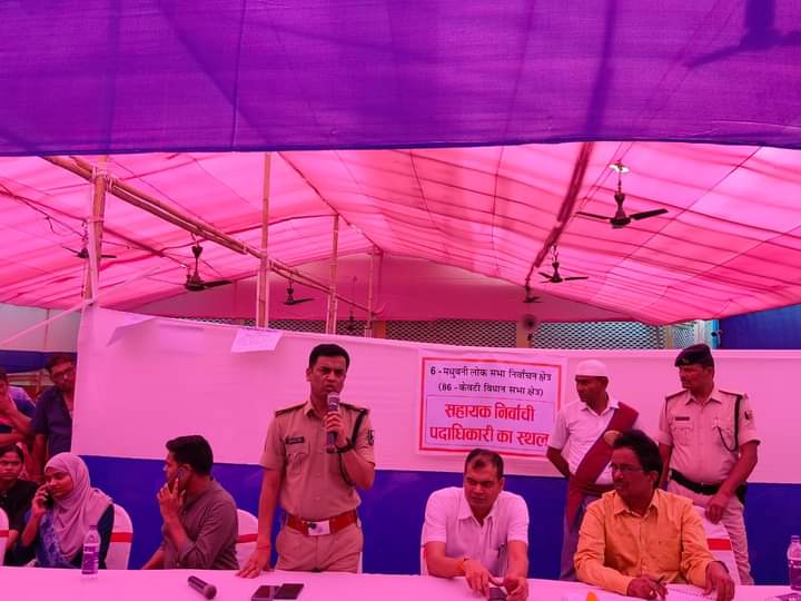 ही जाए। किसी के लालच में नहीं आना है यदि शिकायत मिलेगी, तो सुसंगत धारा के तहत कारवाई की जाएगी। सभी मतदान केंद्रों पर पर्याप्त संख्या में पुलिस बलों की प्रतिनियुक्ति की गई है। कोई भी बॉडीगार्ड 200 मीटर की परिधि के मतदान केंद्र से बाहर ही रहेगा।